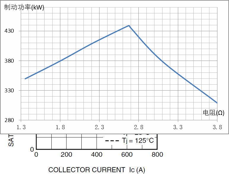 查到三菱CM400DY-34A和英飛凌FZ400R17KE3的晶體管特性與其完全相同,因此可以使用他們的“VCE-IC”特性曲線,獲得制動晶體管的導(dǎo)通壓降。