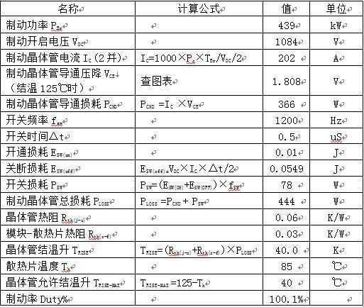表二、制動晶體管結(jié)溫計算表: