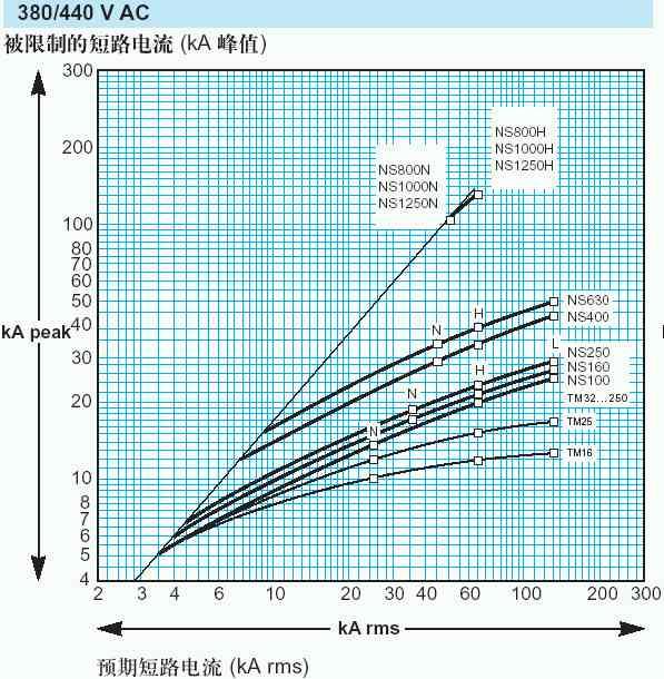 再看一下施耐德NS斷路器的高級功能 — reflex能量跳閘功能,據稱在短路故障時能產生一種強大氣體壓力直接作用于一個活塞機構,使斷路器快速可靠地分斷。由于動作非常迅速,<10ms,所以如同快速熔斷器一樣,具有自然抑制短路電流的功能。其限流特性曲線如下圖:
