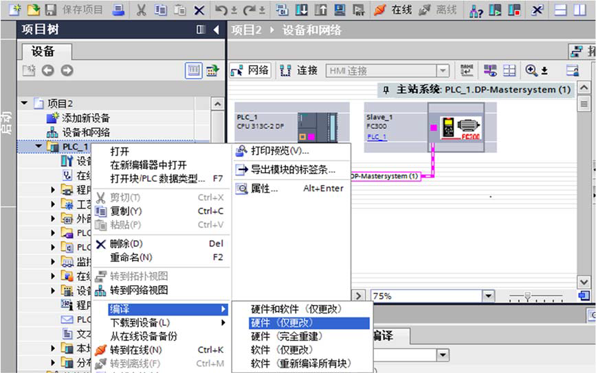 單擊“未分配”,出現下圖所示選項選擇主站,選擇主站 PLC_1.DP 接口_1。