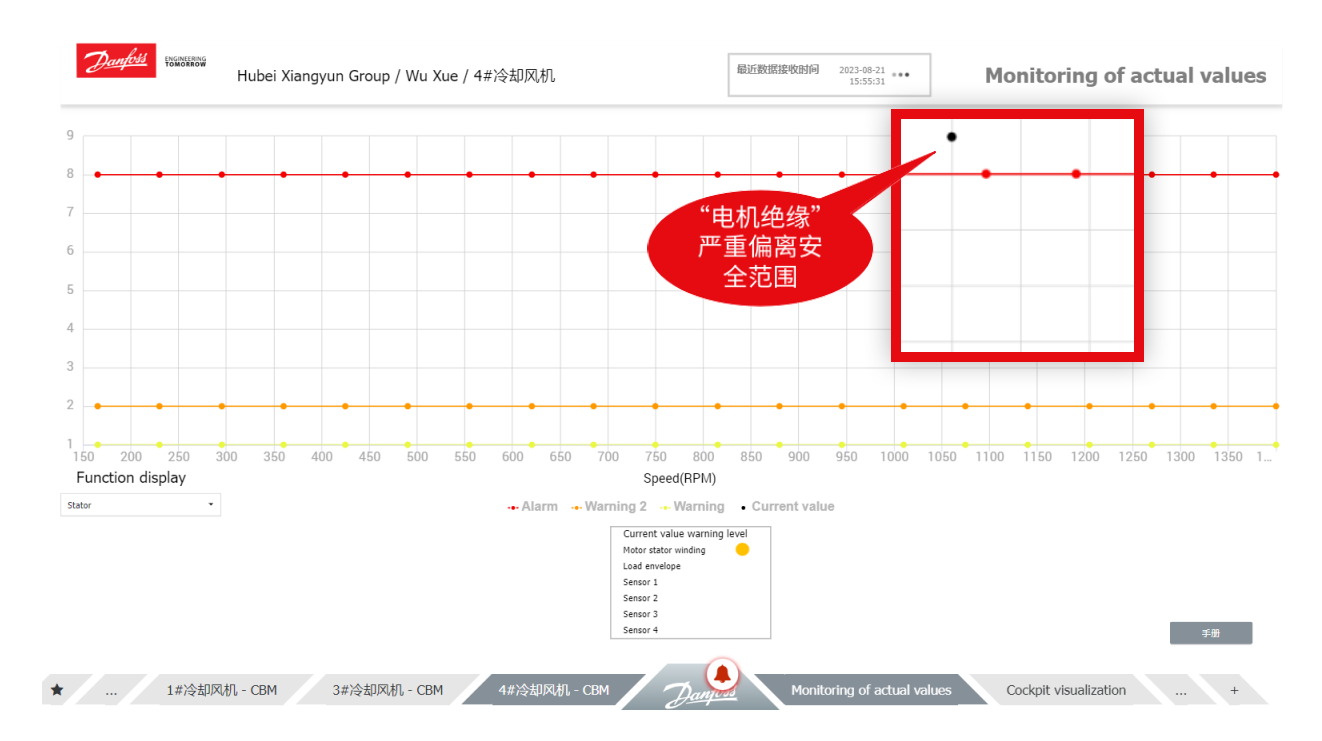 2023年8月21日,“丹管家+CBM”于線上巡檢時發(fā)現(xiàn)客戶的車間機器存在電機絕緣異常的潛在風險,進行了遠程報警。線上形成遠程診斷報告后,送達用戶并向其做出預警。