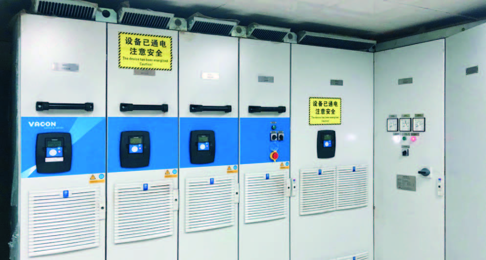 平臺的關鍵配置為變頻動齒輪齒條升降系統,整個平臺共有4個樁腿,可以自由上下升降,并且需要根據實際工況隨時調節三邊鋼結構舷的應力。整個平臺的重量都承受在4個樁腿上,因此對于啟動時候的電機力矩有很高的要求。因此公司采用Danfoss VACON® NXPCommon DC Bus System系列共直流母線驅動產品作為抬升系統的電氣驅動使用。