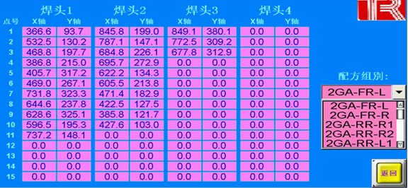 因設備所焊接的門板多達十幾種,而每個門板的焊接孔位置是不一樣的,所以需要使用配方功能,來實現同一臺設備焊接不同門板。設備配方所包含的功能如下: